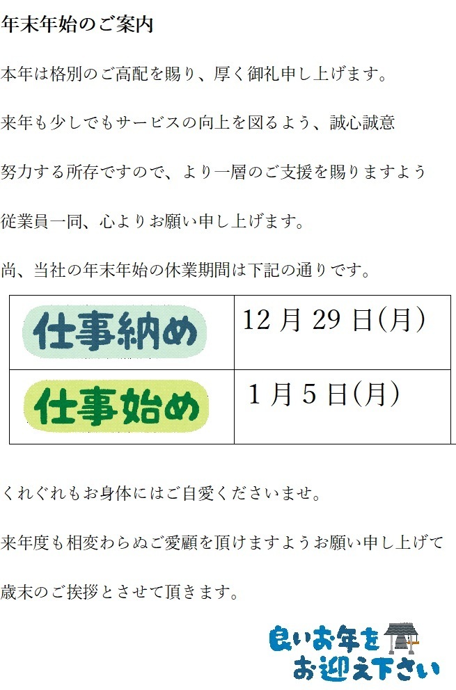 年末年始のご案内